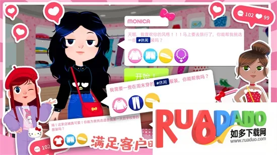 2、作为凯蒂猫商店时装经理,给顾客推荐衣服,满足要求还能获收益升级店铺。