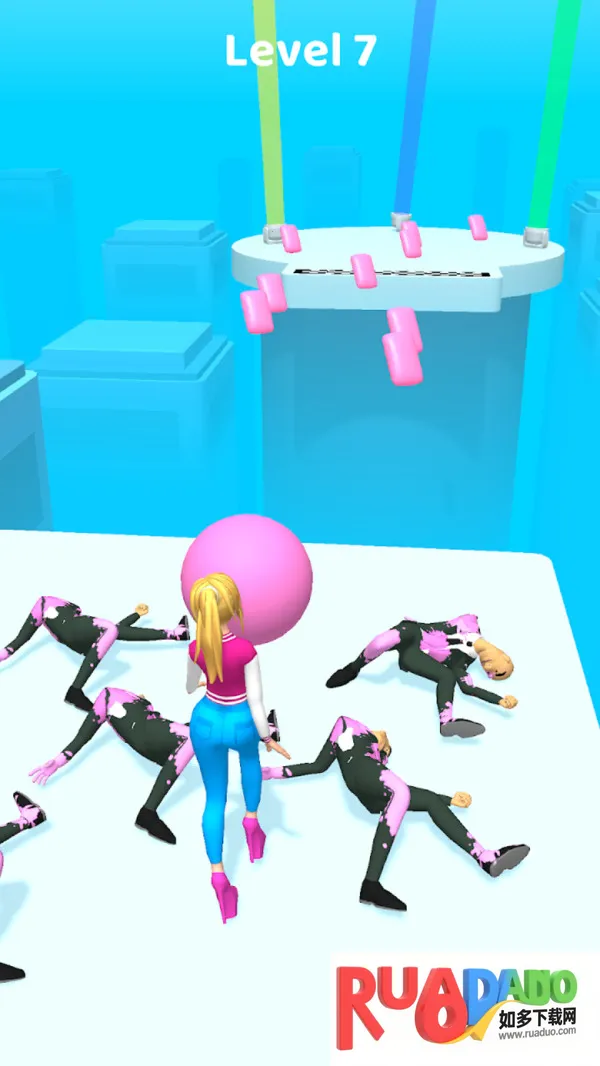 3、玩家在跑酷过程中收集口香糖,吹泡泡击败敌人,操作简单。
