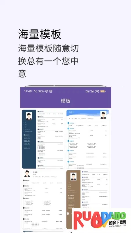 4、提供近万种设计模板,种类丰富任您挑选,轻松打造出众简历。