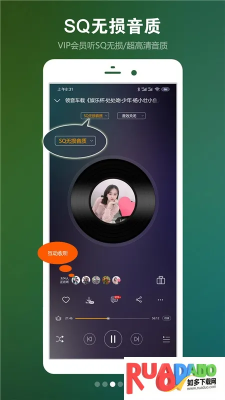 2. 音质出色,VIP会员可随时在线听SQ无损超高清音质,还有多重音质选择,带来优质聆听体验。