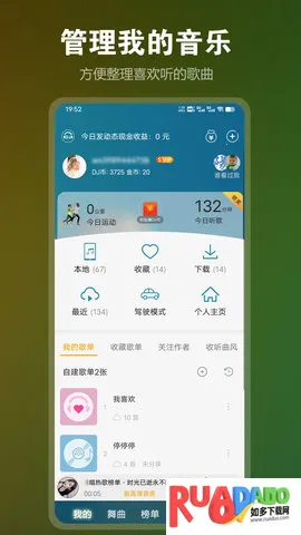 3. 功能便利,支持连接车辆蓝牙,还能一键下载舞曲,多线程下载断点续传,离线也能畅享音乐。