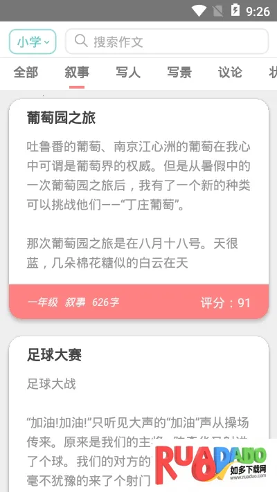 1. 题材丰富:涵盖叙事、写人、写景、议论等多种题材,还有按字数及分类检索功能,节日时节也有对应优秀作文推荐。