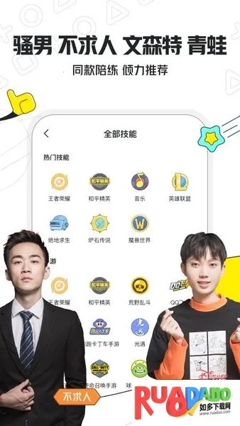 1、由虎牙官方打造,全虎牙平台声音技术游戏陪玩主播汇聚,全国游戏大神众多,技术有保证。