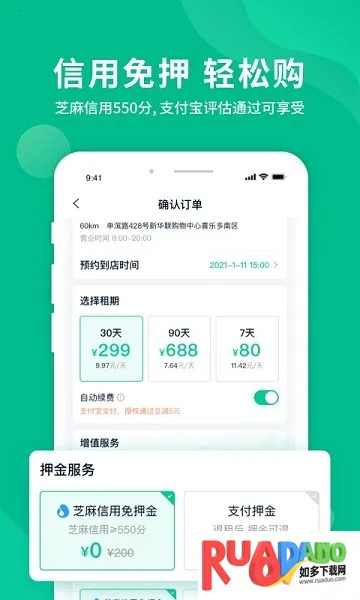 2、支持信用免押,芝麻信用达550分就能放心租赁。