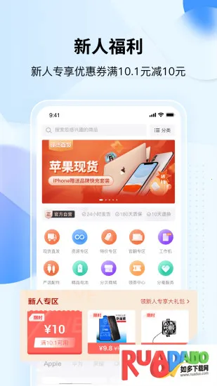 3、新用户福利多,可领总价值115元的优惠券,多种商品享限时优惠,回收手机赠送限时加价红包。