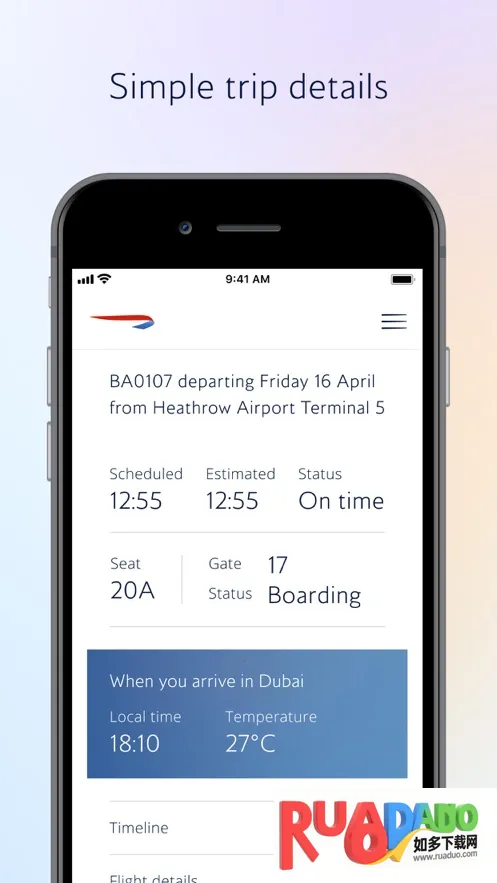 British Airways(英航)即英国航空,可在此了解英航动态、查询全球目的地。其App让预订、登机及获取航班信息更轻松,有航班状态查看、办理登机等功能,还支持多乘客登机牌,会员有专属权益。