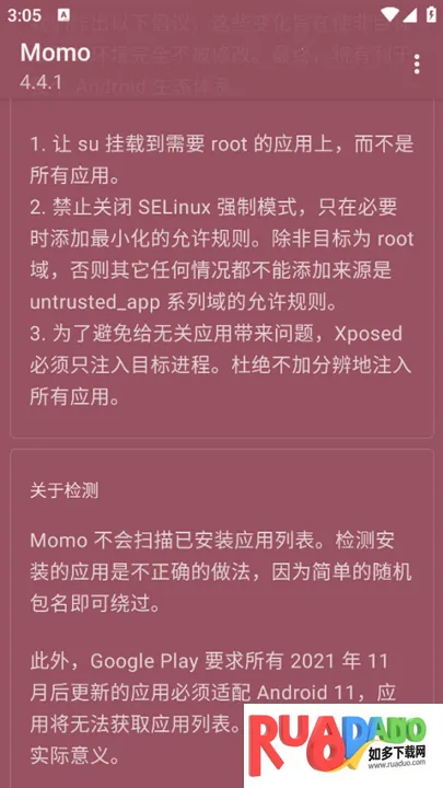 1、momo环境检测2025最新款是专为安卓用户打造的系统检测工具,能检查和监控手机环境信息,集Root权限检测、Xposed框架识别、硬件信息监测及安全防护于一体,可实时检测手机是否获取Root权限或安装Xposed框架,规避兼容性问题。