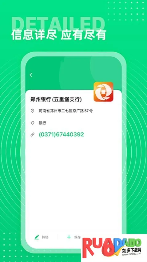 3、信息详尽:展示各大银行网点、快递等详情电话信息,方便更好查看。