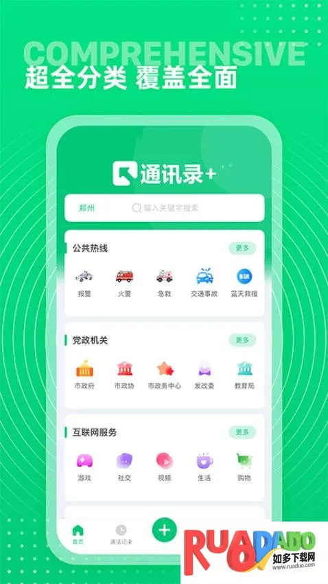 通讯录+(电话查询)是实用的电话查询工具,汇聚城市公共、快递物流、银行保险等各类日常常用电话。可建专属通讯录记录联系人,支持快速检索、一键收藏,还能安全保存,帮你轻松解决通讯问题。