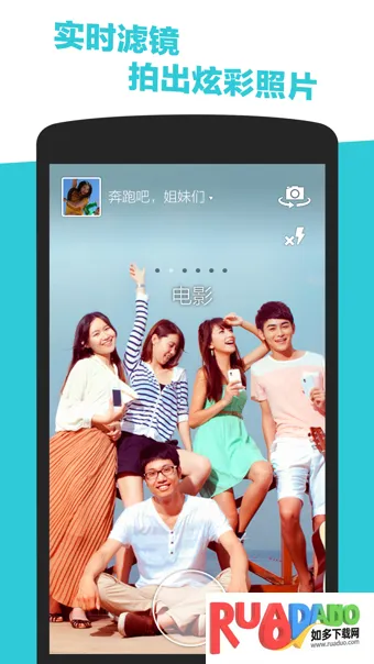 2、功能丰富:有实时滤镜赋予图片多彩色彩,模拟前置自拍闪光灯助暗光自拍清晰,照片缓存下载不耗流量。