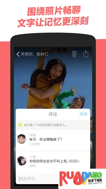 4、社交多元:能实时聊天评论,定制群组相册,还可一键分享到社交圈,找到同好交流。