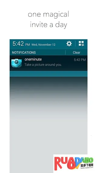 3、每个用户每天有一分钟分享时间,且在同一时间。匿名分享照片的方式轻松无压力,点击通知即可参与。