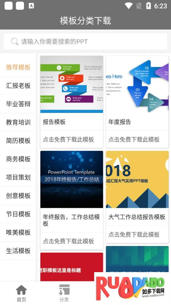 4、搜索便捷,可直接输入PPT名称搜索,还能智能推荐精品PPT节约时间,且可一键下载,下载成功就能自由编辑,全部模板和素材免费下,还定期更新。