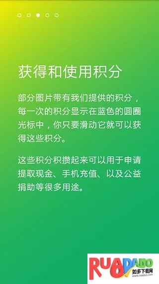 4、使用手机过程中有可能获得积分,积分可用于公益捐助、手机充值或提取现金;开启仅在 WiFi 环境更新选项,不占用流量。