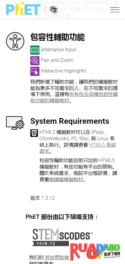 PHET2025官方正版是科罗拉多大学开发的免费互动式科学模拟学习工具。含超70个HTML5模拟交互程序,有离线使用、多语言等特色。涵盖多学科实验,操作零门槛,还有教育者专属工具,受数百万学生青睐。