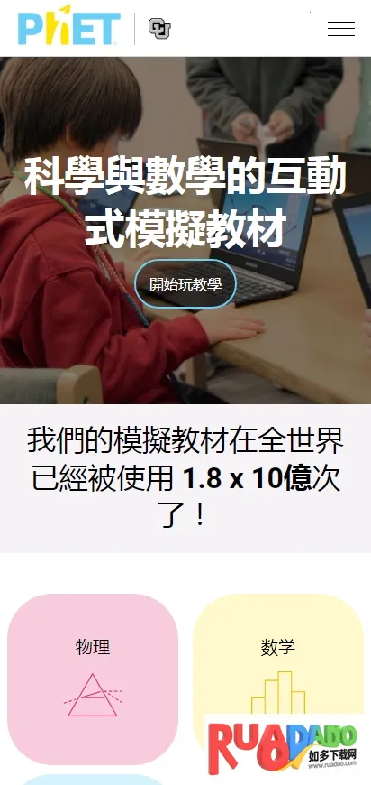 2、它包含超70个基于HTML5的模拟交互程序,适合多种场景学习,每年被数百万学生使用。