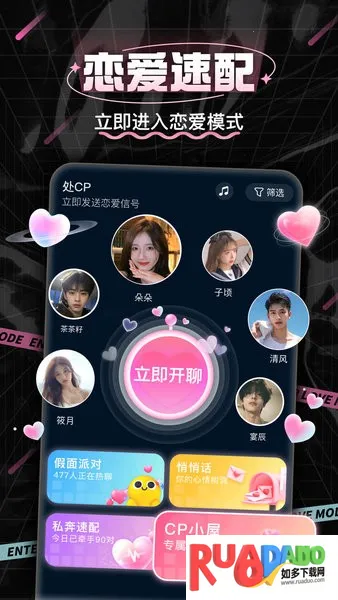1、高效速配:能根据个人信息和爱好快速筛选,精准匹配合适的CP对象,让找对象变得高效容易。