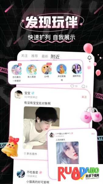 4、满足多样社交需求。无论你是想找对象、找朋友还是找人开黑,在这里都能变得高效容易,轻松开启甜甜的恋爱之旅。