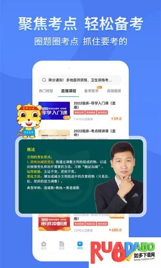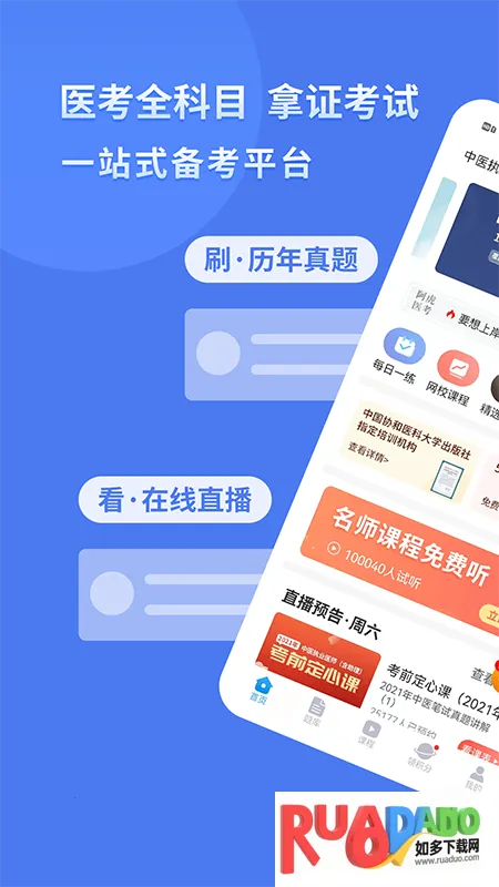 1、一站式备考:提供医考全科目学习,集合历年真题、在线直播、精华考点、押题密卷等,满足多样备考需求。