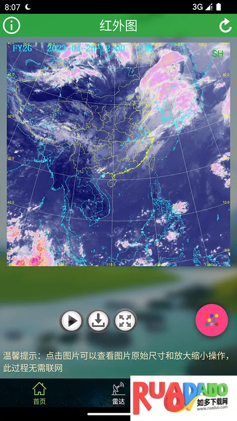 2、丰富气象信息:不仅有卫星云图,还汇聚了红外图、雷达图、降水预报图、水汽云图等多种云图,提供全面气象数据。