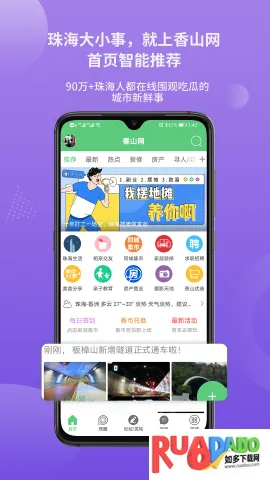 3、生活实用:有香山商城提供本地在线购物平台,吃货社区送上珠海好吃的小吃地址;还提供招聘、找房、查天气、交通广播、线上办事等便民服务。