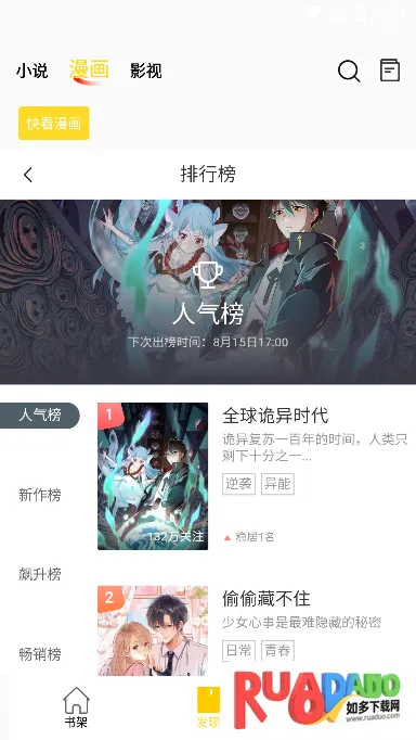 4. 优质体验:漫画画面高清精美,可设置横屏或竖屏阅读界面;内置漫画榜单,方便用户发现更多好漫;还支持漫画涂鸦创作,激发用户绘画潜能。