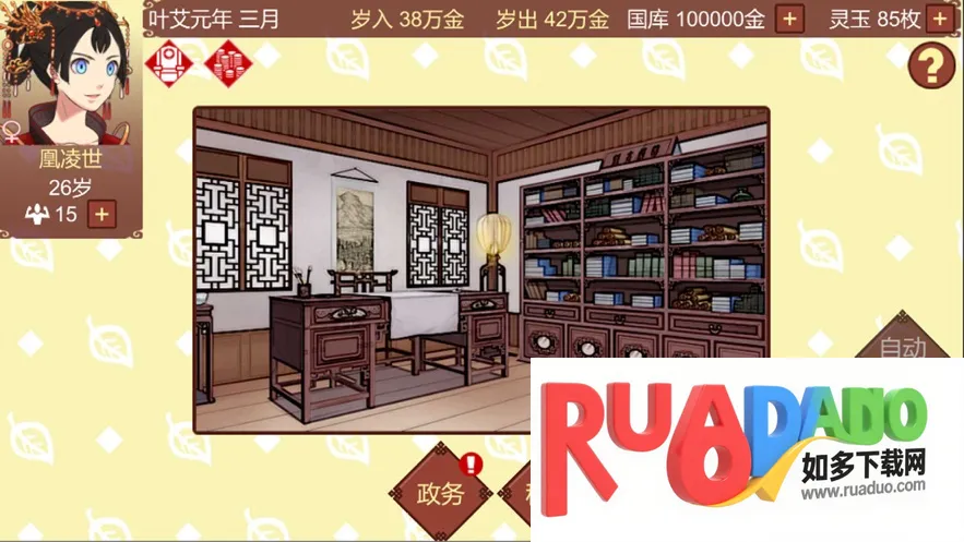 2、玩法多样自由,融合政务管理、后宫互动、换装、养成恋爱等玩法,选择自由度高,可自定义角色信息与外观。
