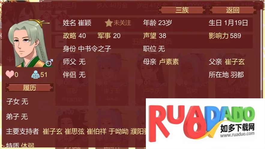 1、丰富剧情体验:游戏设定主人公依靠战争成为开国皇帝,面对积贫积弱的国库和世家大族,需培养势力、挑选凤君诞下龙子。玩家不同选择会使剧情走向不一,还会触发随机小剧情,并有大量人物设计和精彩故事剧情。