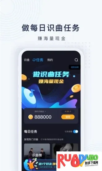 4、功能多样:可复制短视频链接识曲,戴耳机也能识别,还能提取视频音乐设置铃声、动态壁纸,每日做识曲任务有机会赚现金。