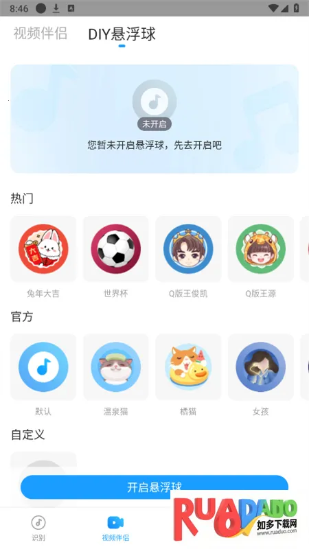 3、首创悬浮识曲黑科技,开启悬浮球能边刷视频边识曲,打开短视频自动弹出悬浮球识别背景歌曲,识别结果可试听高潮并跳转播放器。