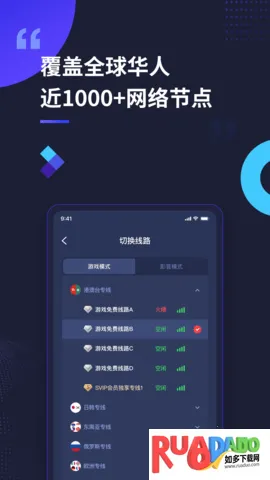 2、智能识别切换:可自动识别当前应用所需的网络环境并自动切换,在中国应用和当地应用切换时也能智能适配,避免加速后当地应用无法使用。