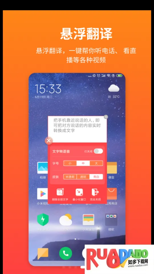 4、翻译功能实用:有远距离和近距离翻译功能,远距离可接收4米内语音,近距离支持多地方言,悬浮翻译还能让无字幕视频实时显示字幕。