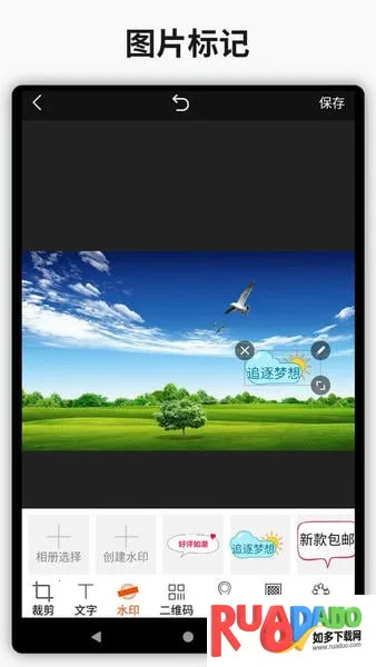 4、功能全面,能进行图片标记、团队编辑转发,支持图片拼接制作分享;可对图片、视频快速添加水印、文字、二维码等,还能进行裁剪等处理;支持视频萌拍,有美颜、变速、添加音乐等功能。