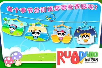 3、兼顾教育与娱乐,以四季为背景让宝宝辨别不同季节的衣服,多国童声发音可兼顾语言启发。
