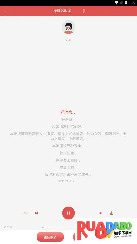 3、广告模板丰富:涵盖彩铃、地摊叫卖、超市、珠宝、服装、家电、美食等多个类型的广告模板,随意挑选。