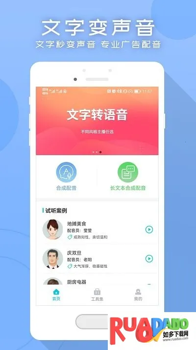 配音文字转语音助手2025最新版本是实用的文字转语音软件。具备智能语音合成,输入文本秒变清晰语音,支持超长文本。有不同风格主播、众多广告模板可选,还能添加背景音乐,操作简单高效,适用多场景。