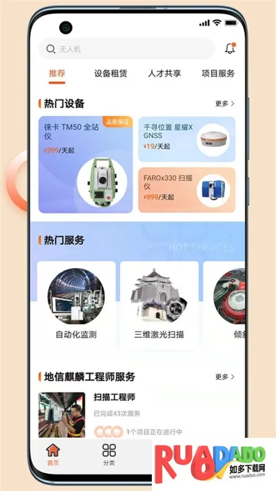2、服务多元,既能租赁设备,也能租赁人才,满足测绘地理信息行业多样需求。