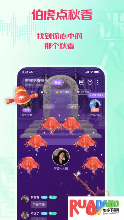 1、迷人语音以伯虎点秋香为主题,能让用户体验浪漫爱情故事,满足找爱情、交朋友的需求。