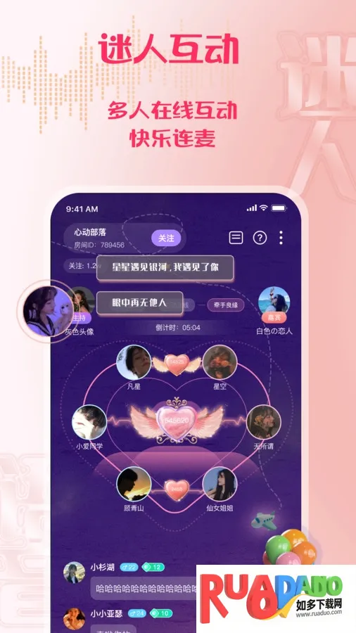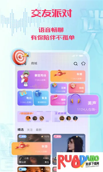 2、多元社交:提供多种社交模式,有交友派对、蒙面歌王活动等,还支持多人在线互动、连麦等,能结识志同道合的朋友。