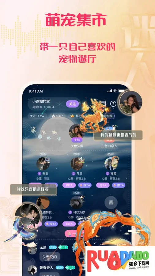 3、体验新颖独特,可领养宠物逛宠物集市、遛厅,还能收听暖心电台,增添社交乐趣与情感慰藉。