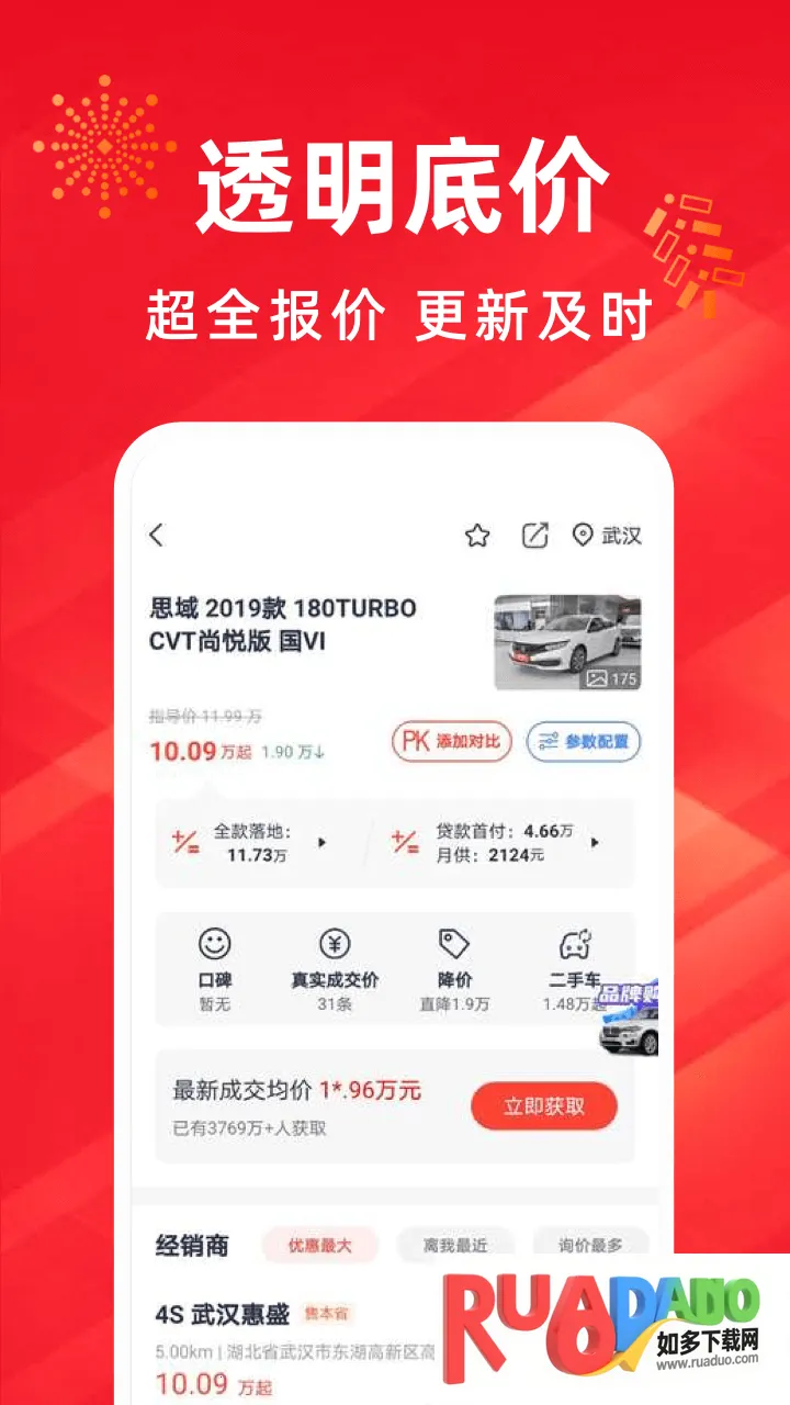 2、报价准确:覆盖354个城市海量经销商,涵盖近万款车型,及时更新汽车报价信息,能让你快速了解且拿到低价。
