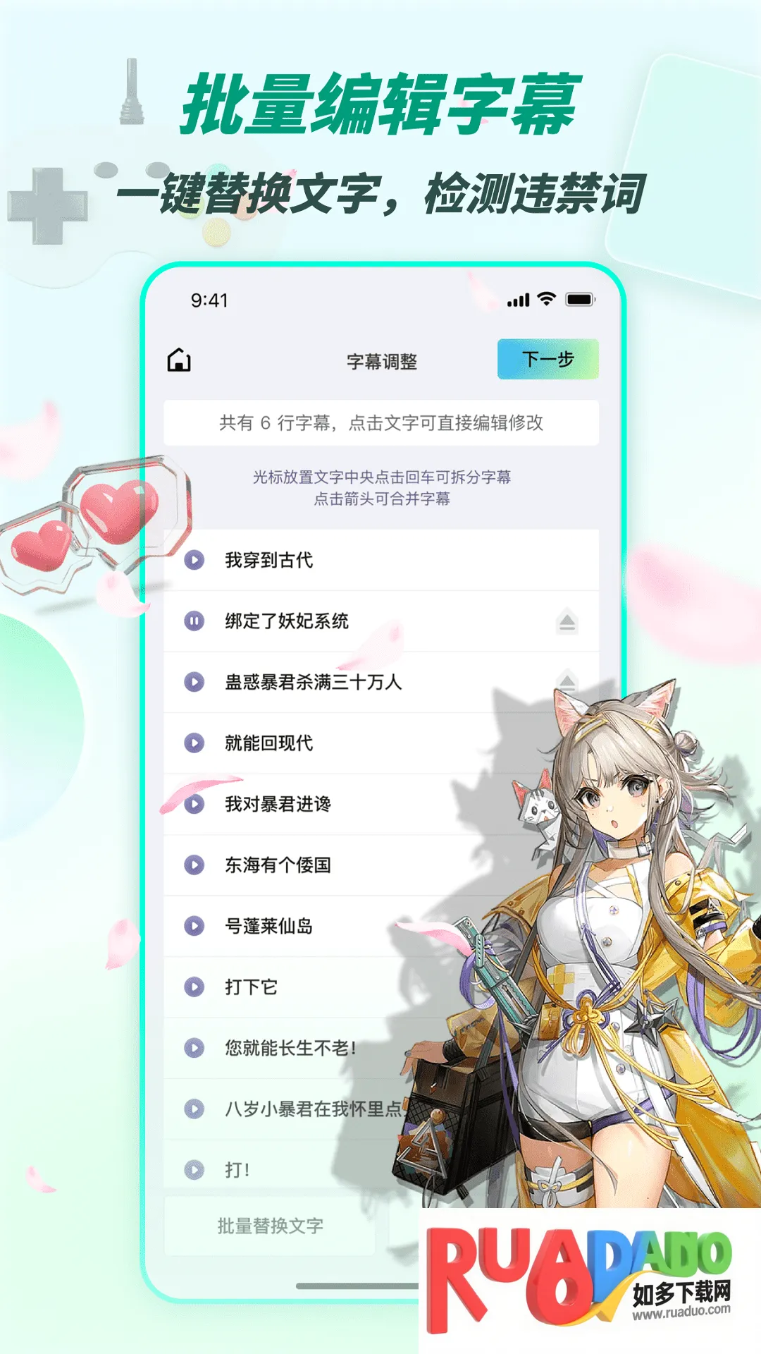 2、内容安全:依托强大去重技术,保证输出内容原创性,还能快速查找违禁词,批量编辑字幕时可检测违禁项。