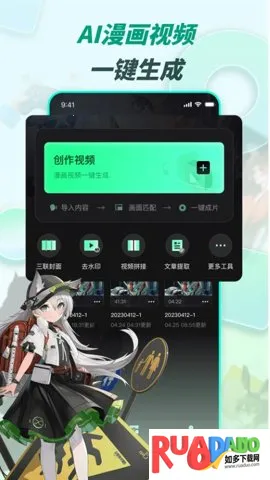 1、高效创作:采用先进AI技术,自动出图自动成片,能一键创作漫画影视,快速将漫画转化为视频,大大提高创作效率。
