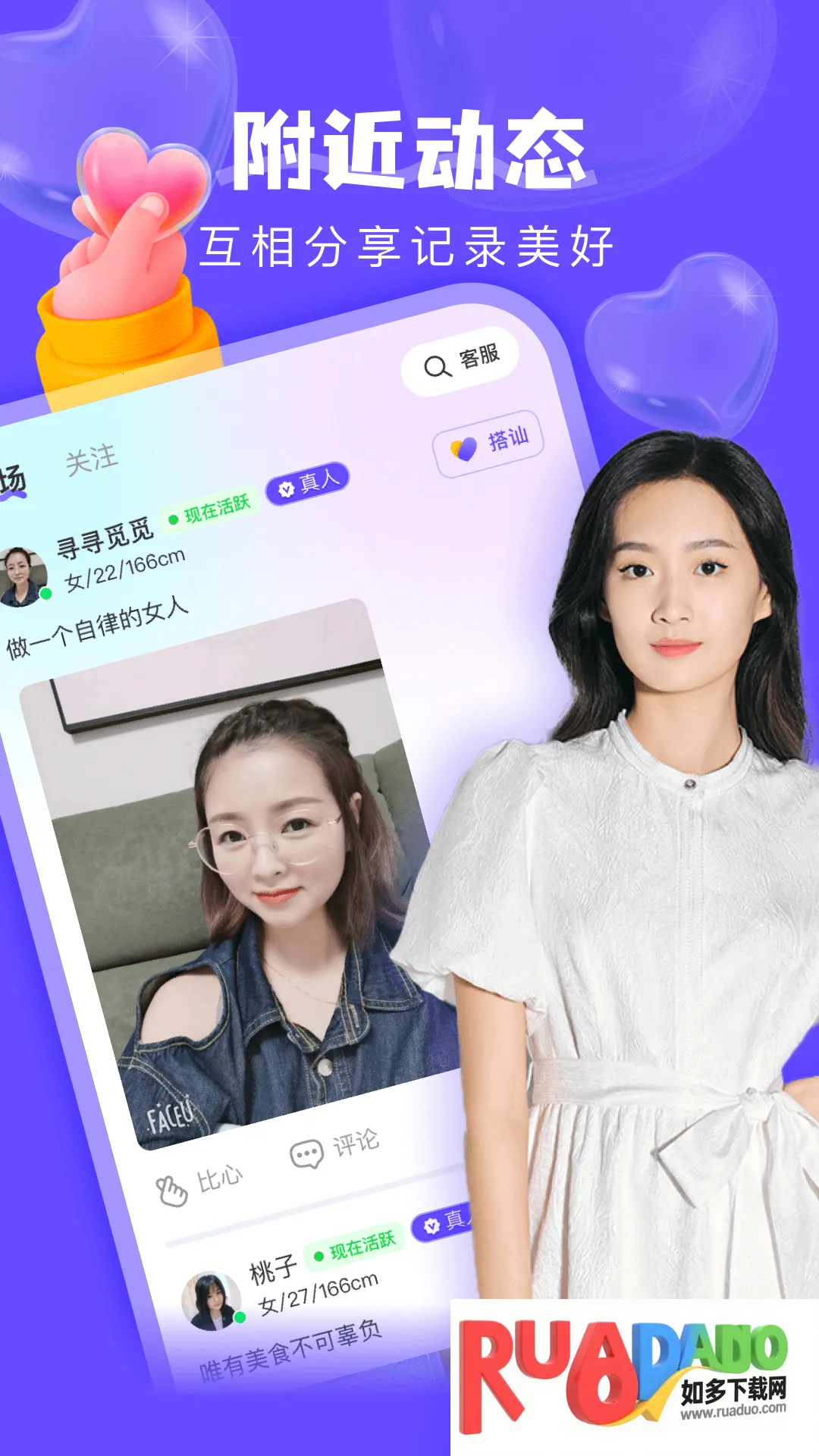 附近探陌一对聊是社交交友软件,支持短信、第三方账号登录,有个性化资料设置等。基于地理位置,能速寻身边好友,有智能匹配。支持语音、视频、文字聊天,有匿名交流,还有海量陪聊、趣味话题。