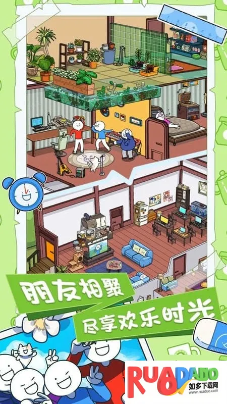 3、画风可爱:采用极简卡通画风,人物彩色呈现,整体画风魔性又可爱,从各种场景中能感受到很多乐趣。