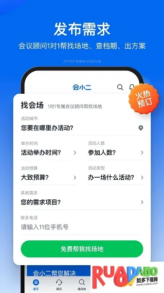 会小二是北京云动数字媒体技术有限公司推出的会议资源在线预订平台。它对接全国2万多家酒店和7万多个特色场地,5秒提需求,10分钟顾问致电,28分钟出方案,专业顾问全程跟进,已服务超20万家企业。