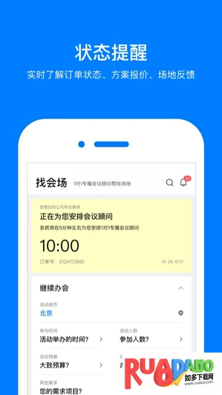 1、高效便捷:5秒提交需求,10分钟顾问致电,28分钟接收会场方案,节省大量时间精力。