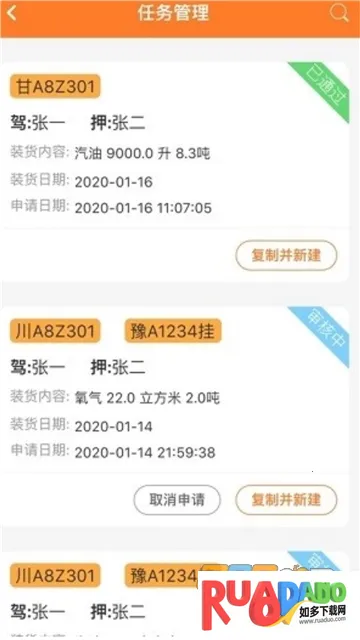 2. 它能在线填写申请单、查看任务情况,申请中、已完成、未完成等订单一目了然,还能在线写和查看行车日志,查看运单实时状态。