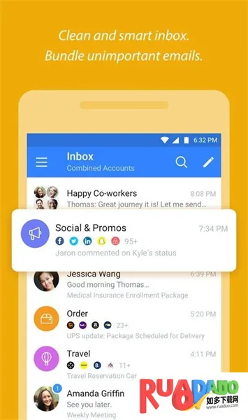 4、功能实用,提供智能识别和过滤功能,可对邮箱中可能收到的广告类型邮件进行处理,还支持与其他应用和设备同步联系人、日历等信息。