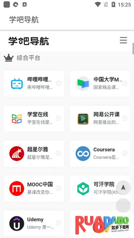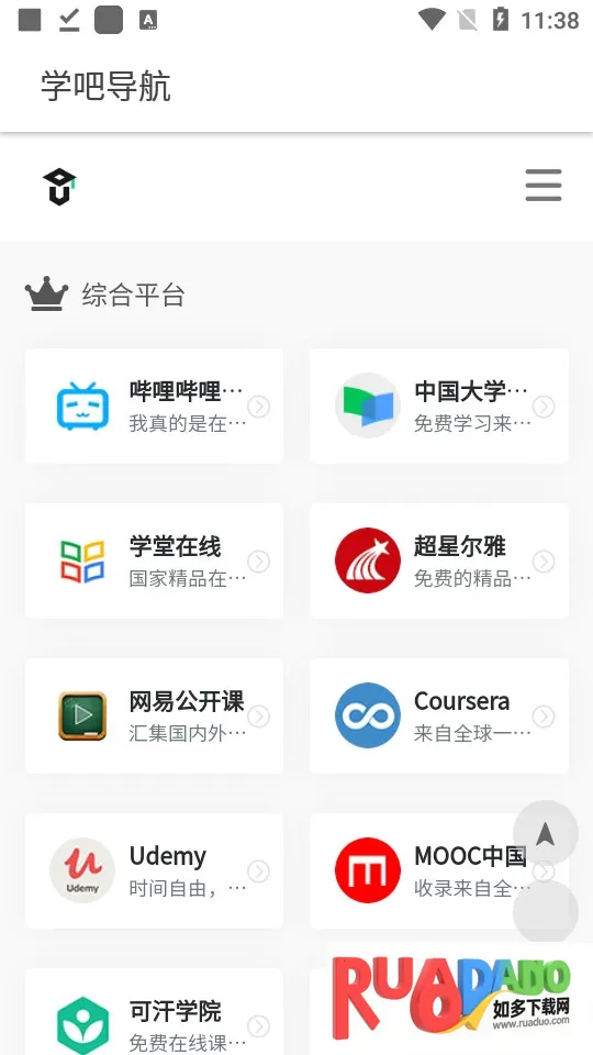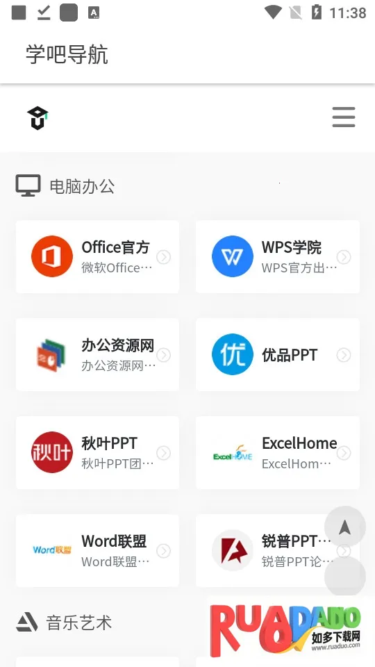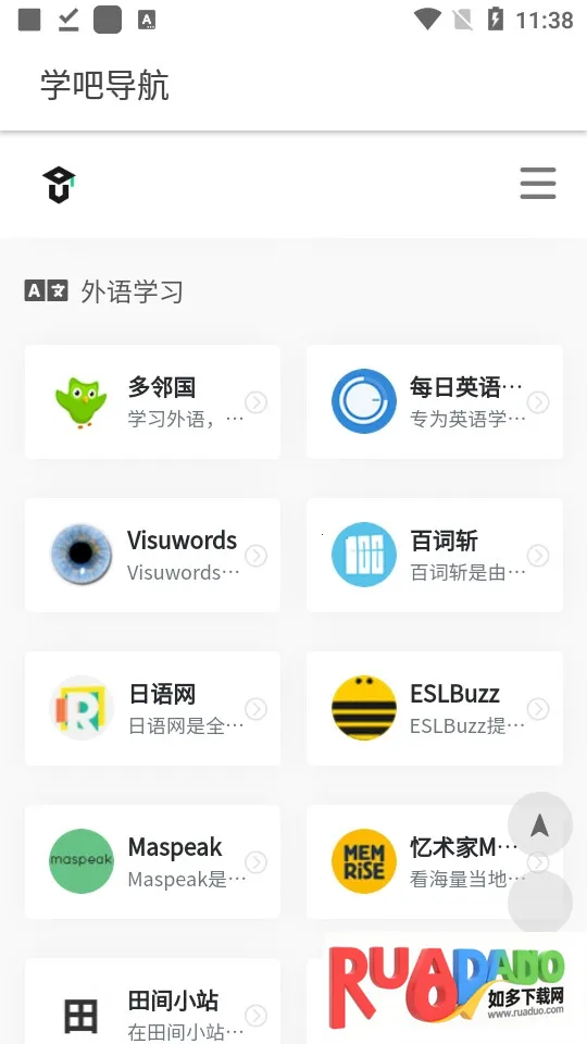 学吧导航是一款受四十万学习爱好者青睐的导航类应用。它以导航网站形式聚合热门网站,提供丰富教育学术资源与实用工具,覆盖多领域,点击内容可直跳网站,内存小资源丰厚。